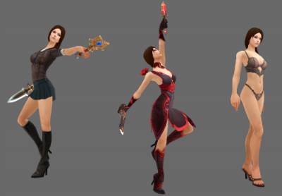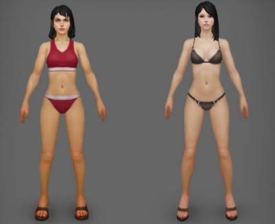 Прежде всего, была подготовлена новая трехмерная модель. Затем ее тщательно "раскрасили", покрыв текстурами. Как можно увидеть на рисунке выше, оттенок кожи стал прохладнее, а на смену старому спортивному топику пришел элегантный комплект белья. Налюбовавшись своим творением, художники передали его аниматорам, а сами взялись за тотальную "перекройку" плащей и накидок. Ведь точеную фигурку жалко прятать - ее нужно выставлять напоказ! Результат проделанной работы можно увидеть на изображении ниже: